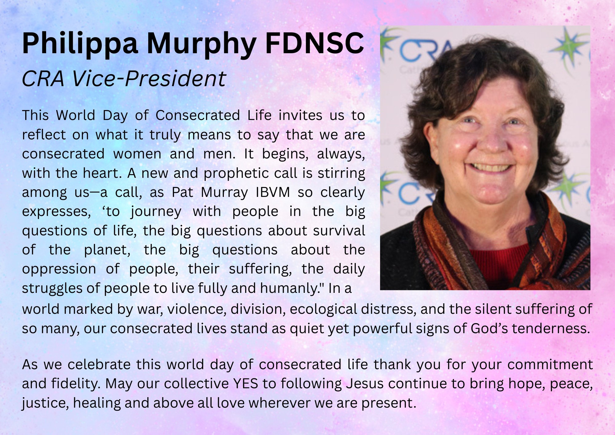 CRA celebrates the lives of consecrated women and men, giving thanks for another year of their generous witness in the daily challenges of church life and missionary endeavours.