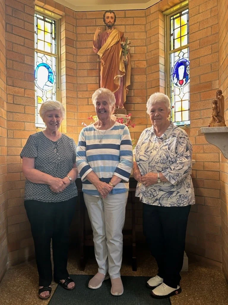 The Josephite Sisters who lived in the convent up until it closed in 2024, Sr Karen Muir, Sr Janet Glass and Sr Bernadette Mary Walsh. PHOTO: Debbie Cramsie/Catholic Weekly..